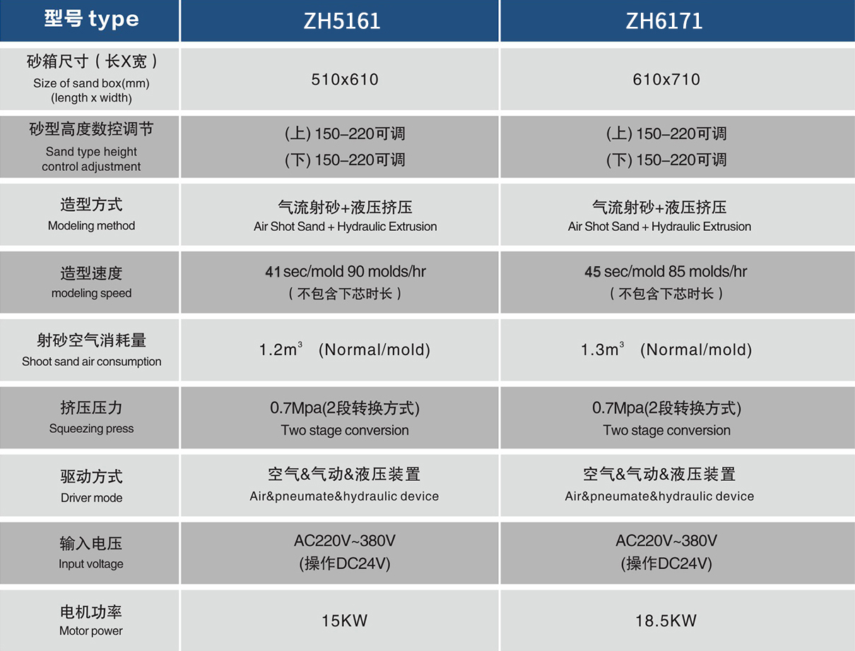 全自動滑出式水平分型造型機產品參數